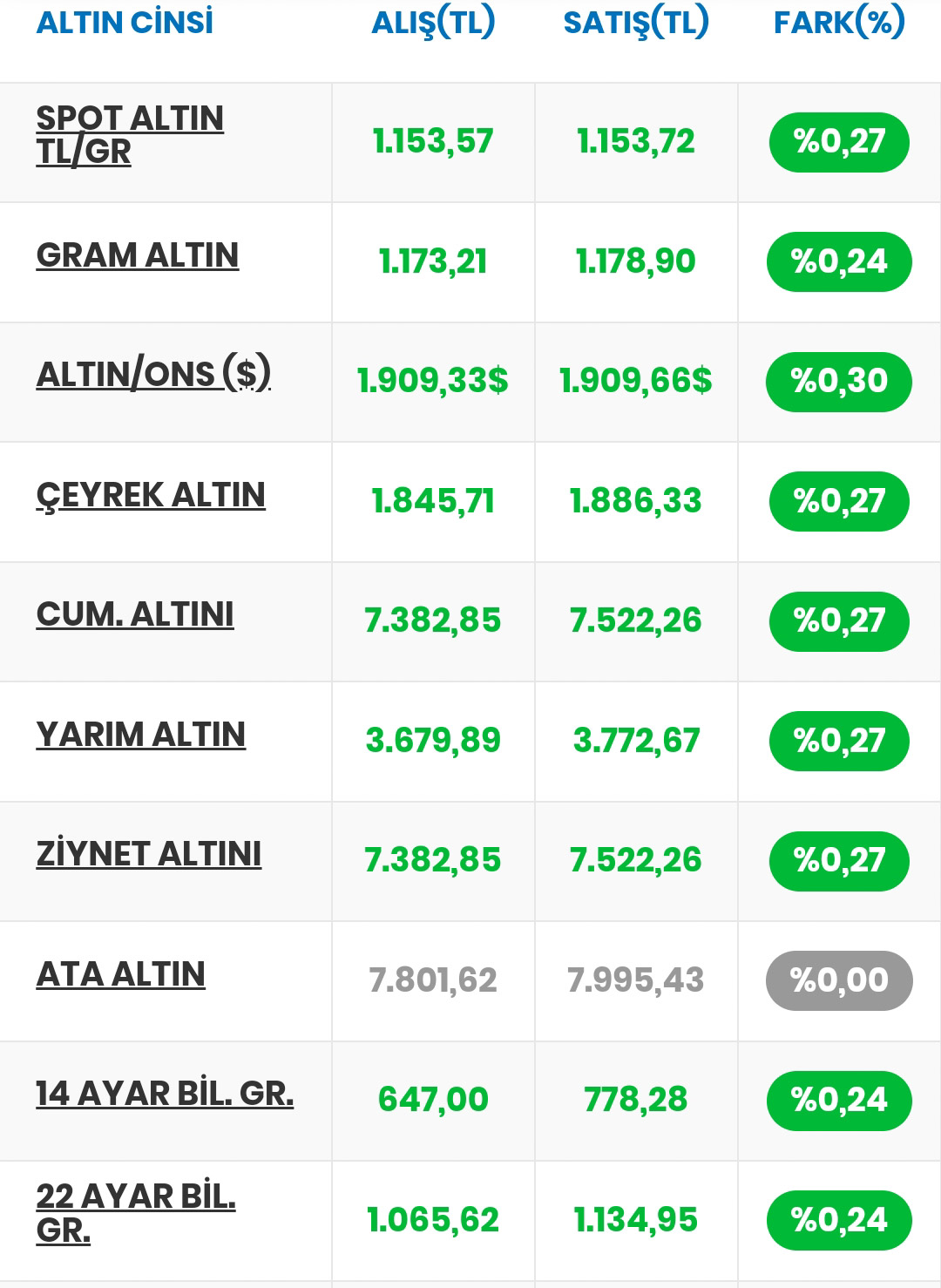 Son dönemde yükselişe geçen altın fiyatları hafta başında yeni bir rekor kırarak bin 164 TL'ye kadar çıkmıştı. Güncel altın fiyatları güne nasıl başladı.