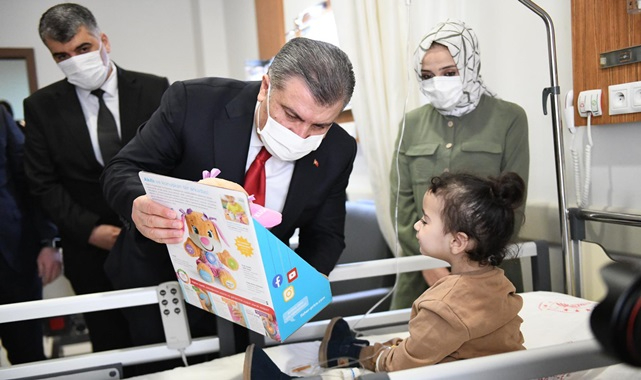 İncelemelerini tamamlayan Bakan Koca ardından hastanede yataklı serviste tedavi gören hastaları ziyaret etti. Burada hasta ve hasta yakınlarının dinleyen Bakan Koca, hasta çocuklara oyunca hediye ederek onlarla sohbet etti.