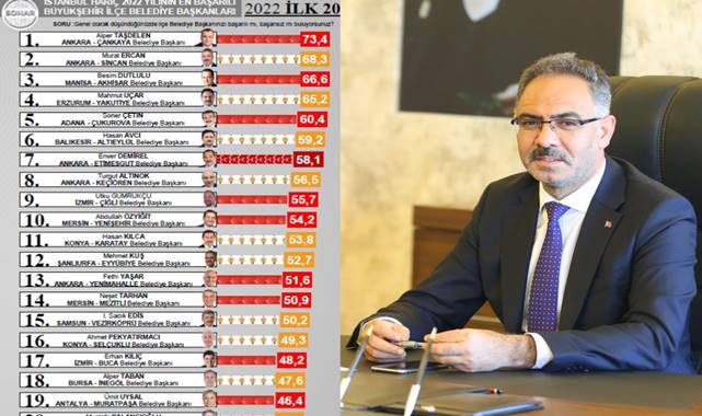 EYYÜBİYE- Seçildiği 2019 yılından bu yana gerek halk içindeki etkinliği, gerekse kamusal hizmetlerinde verimliliğin sağlanmasını temin etmesi nedeniyle seçmenin gönlündeki yerini koruyan Şanlıurfa Eyyübiye Belediye Başkanı Mehmet Kuş, yapılan tüm kamuoyu araştırmalarında başarılı bulundu.Başkan Kuş, son olarak Sonar Araştırma Şirketi’nin yaptığı 2022 Yılının En Başarılı Belediye Başkanları araştırmasında, İstanbul Hariç 2022 Yılının En Başarılı Büyükşehir İlçe Belediye Başkanları içinde 12’nci sırada yer aldı.