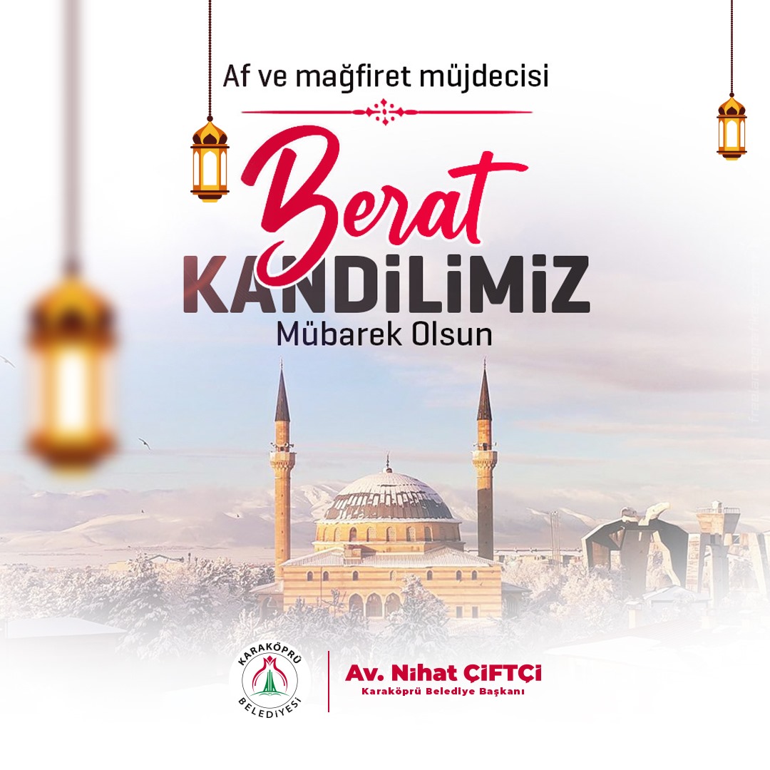 Karaköprü Belediye Başkanı Av. Nihat Çiftçi, Berat Kandili dolayısıyla bir mesaj yayınlayarak bu gecenin İslam âleminde ve dünyada huzurun teminine vesile olmasını diledi.