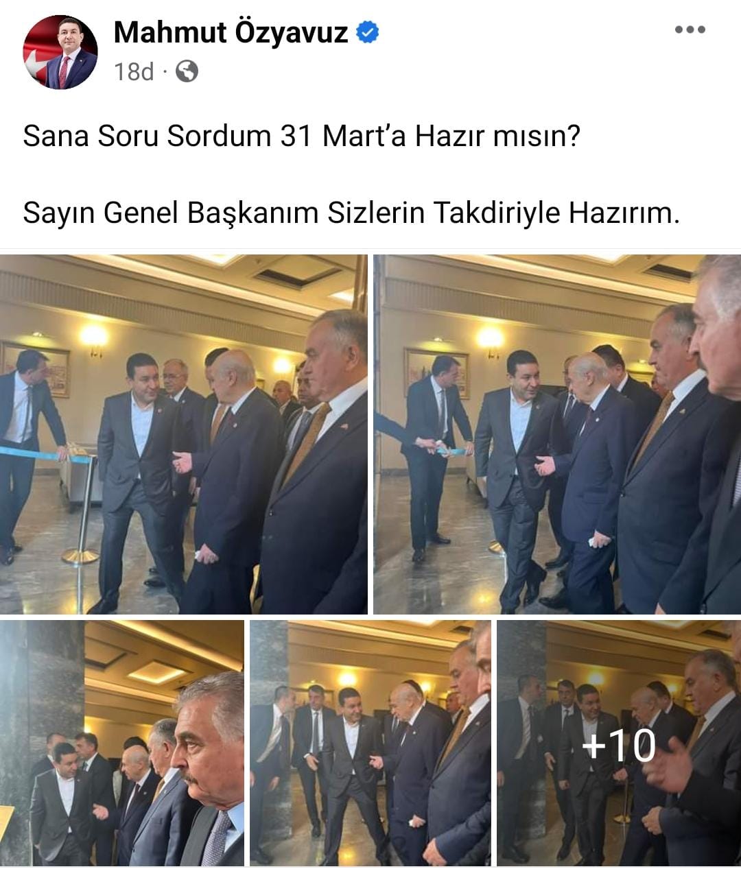 Cumhur İttifakına verdikleri büyük destekten dolayı Başkan Özyavuz'a teşekkür eden, Devler Bahçeli önümüzdeki yerel seçimlerde Başkan Özyavuz'a hazır ol mesajını verdi.