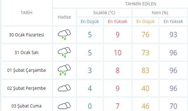 Meteoroloji Genel Müdürlüğünden yapılan açıklamaya göre yağış önümüzdeki Çarşamba gününe kadar sürecek.