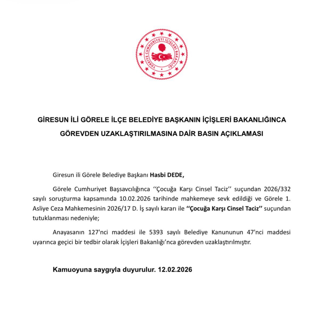 Giresun’un Görele ilçesinde hareketli saatler yaşanıyor. Görele Belediye Başkanı Hasbi Dede, hakkındaki ağır suçlamalar ve devam eden yargı süreci nedeniyle İçişleri Bakanlığı tarafından görevinden uzaklaştırıldı.