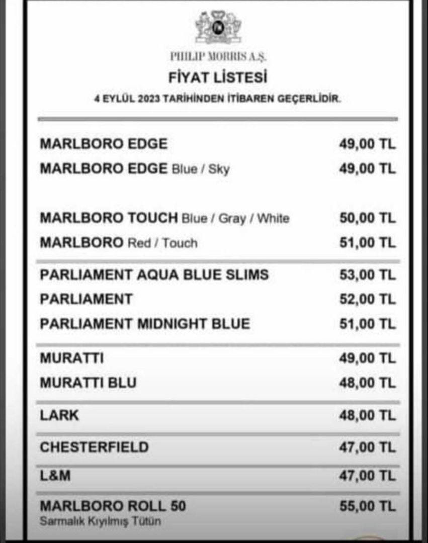 Tekel Bayileri Platformu Başkanı Özgür Aybaş, sosyal medya hesabı üzerinden son sigara zammını duyurdu. Philip Morris sigara grubuna 5 TL zam geldi.