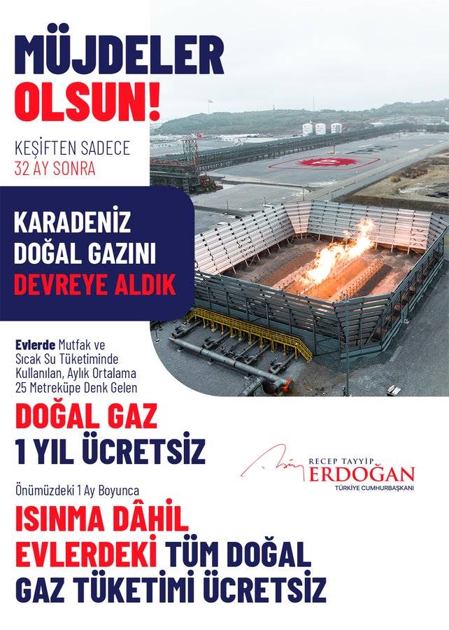 Cumhurbaşkanı Recep Tayyip Erdoğan, 1 yıl boyunca evlerdeki mutfak ve sıcak su tüketimi için gereken doğal gazın ücretsiz olacağını açıkladı. ‘’Ayrıca önümüzdeki 1 ay boyunca konutlarımızda ısınma dâhil tüm doğal gaz tüketiminden de ücret almayacağız.’’ Dedi.