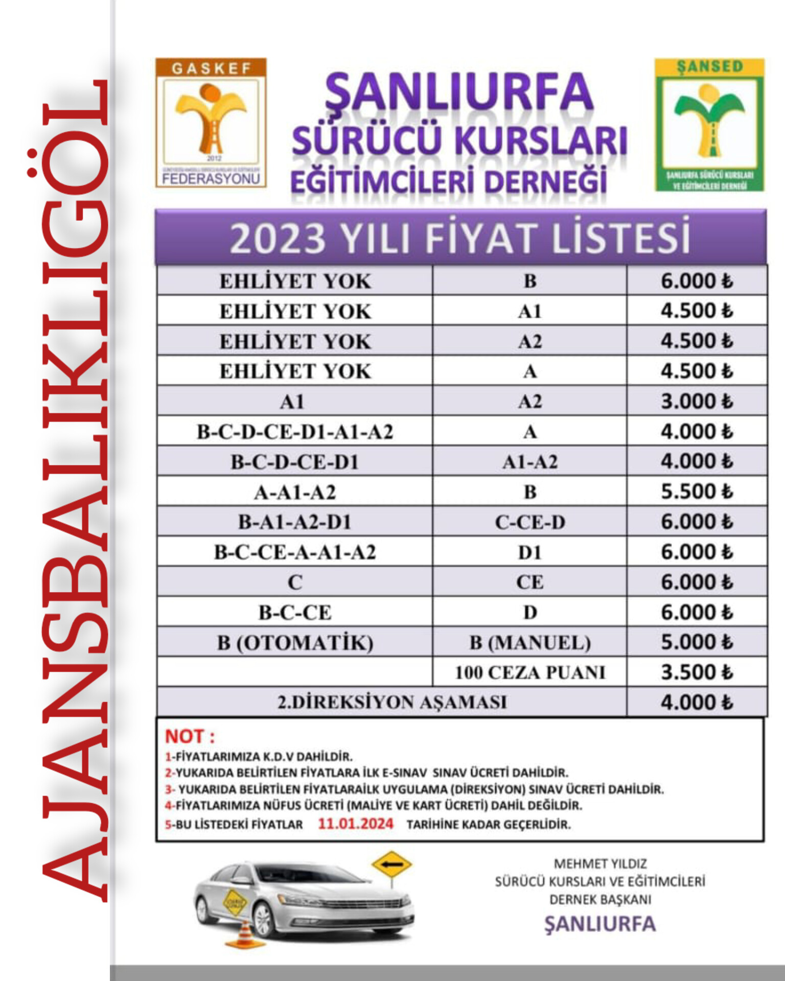 Şanlıurfa Sürücü Kursları Eğitimcileri Derneği zamlı ehliyet ücretlerini duyurdu. Duyurulan tarifeye göre B sınıf ehliyet ücreti 6 Bin TL oldu.
