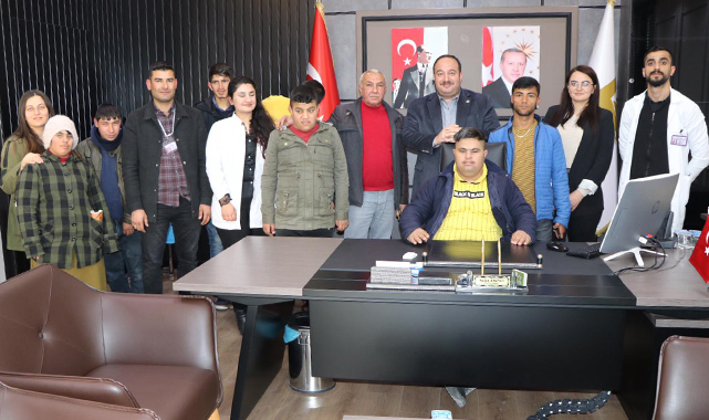 Başkan Ekinci’nin down sendromlu çocuklarla birebir ilgilendiği ziyaret, çekilen hatıra fotoğrafı ile sona erdi.
