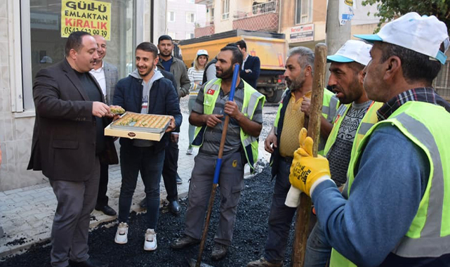 Asfalt ekibine kolaylıklar dileyen ve kendi elleriyle tatlı ikram eden Ekinci, Yenişehir mahallesini daha önce alt yapı şantiyesine, şimdi de üst yapı şantiyesine çevirdiklerini söyledi.