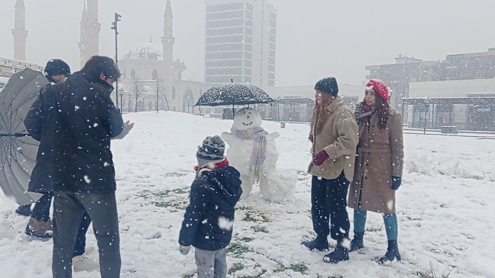 Şanlıurfa'da sabaha karşı başlayan kar yağışı kentte karpostallık kareler oluşturdu.