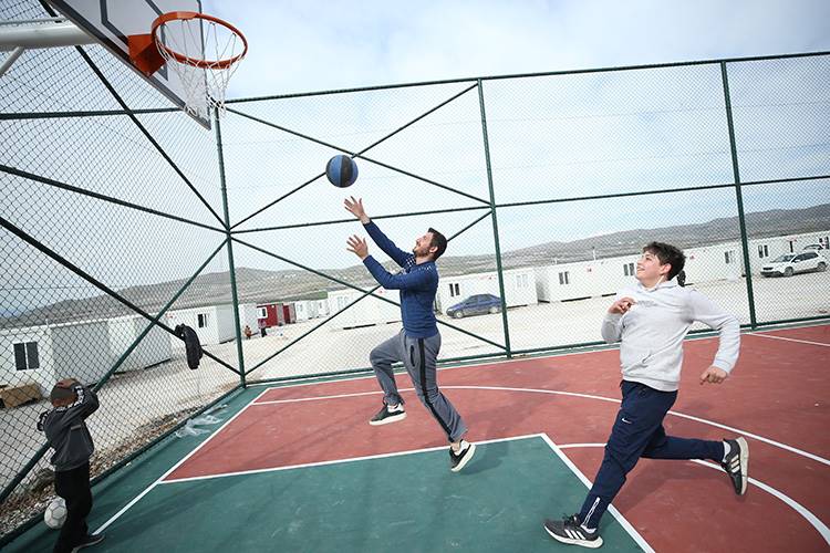 Konteyner kente kurulan basketbol sahasında oynayan gençlerden Yakup Bayındır, "Bizlerin de düşünülmesi çok güzel. Mutlu olduk. Boş vakitlerimizde arkadaşlarımızla birlikte burada buluşup spor yapıyoruz. Biraz olsun depremin acılarını böylece unutuyoruz." ifadelerini kullandı.