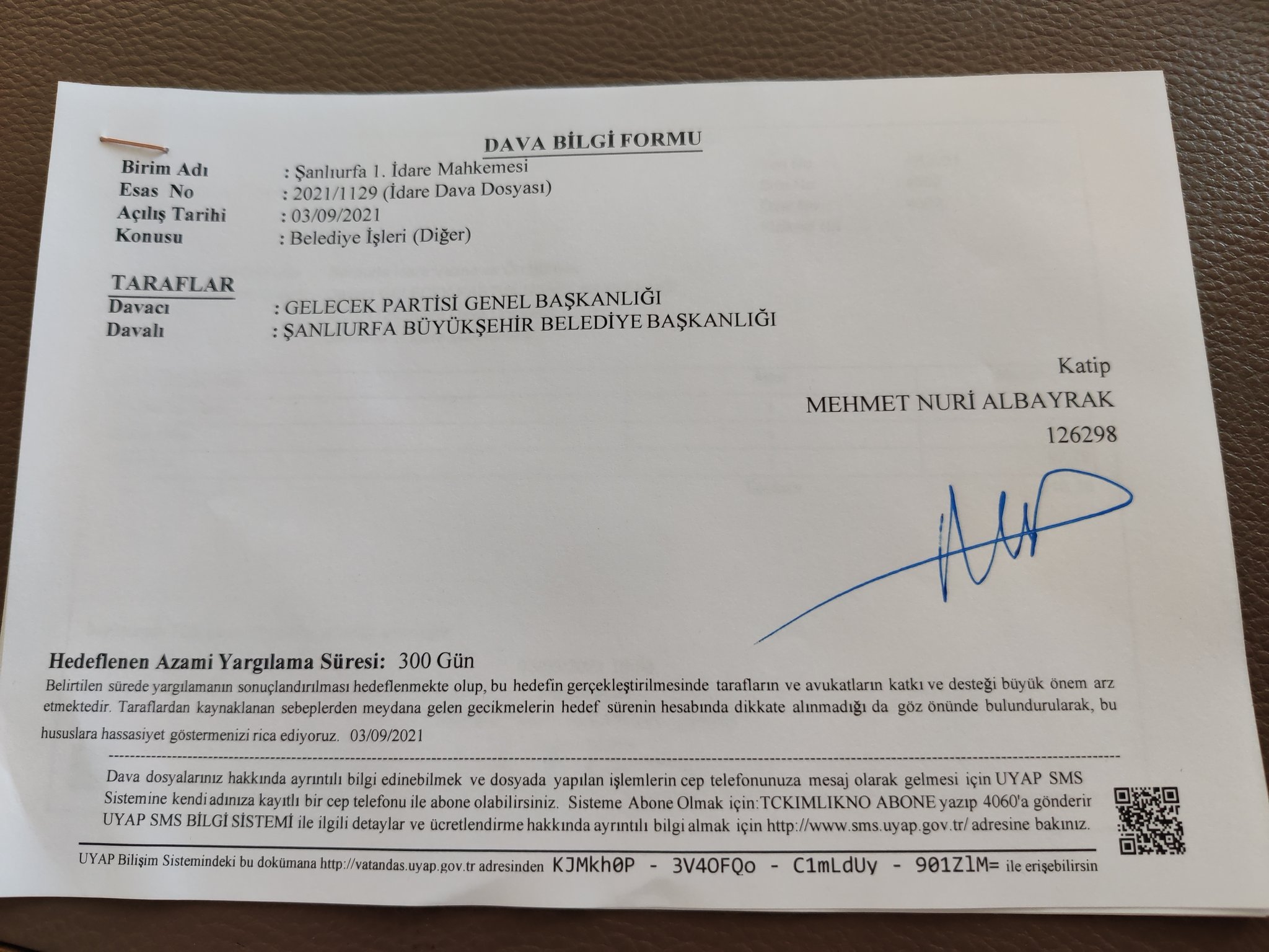 İl Başkanı Abdullah Yeşil Şanlıurfa İdare Mahkemesine dilekçelerinin sunduktan sonra bir basın açıklaması yaptı.