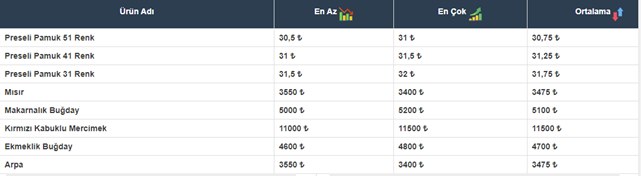 Ticaret Borsasında piyasada satılan hububat fiyatları şöyle: