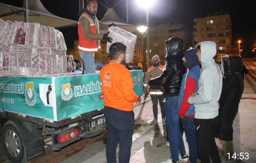 Depremle beraber güvenli alanlarda yaşamaya başlayan vatandaşların temel ihtiyaçları da Haliliye Belediyesi tarafından karşılanmaya başlandı. Battaniye, ısıtıcı, giyim, çocuk bezi, temizlik seti, kumanya, su ve gıda talepleri, Haliliye Belediyesi ekiplerince hızlı bir şekilde karşılanarak, vatandaşların yaraları sarıldı.
