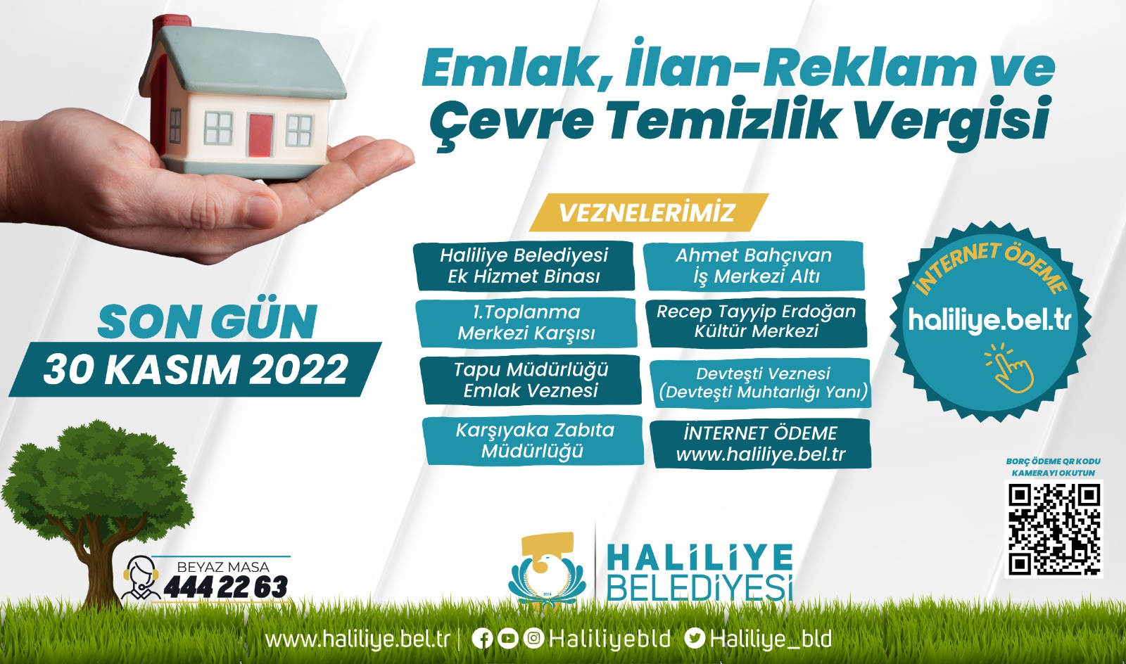 Haliliye Belediyesi, Emlak, İlan- Reklam ve Çevre Temizlik Vergisi ödemelerini duyurdu.