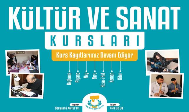 Kursiyerlere sanatla iç içe olmalarına olanak sağlanan kurslara kayıtlar Kamberiye Mahallesinde bulunan Haliliye Belediyesi Kültür ve Sanat Evinde devam ediyor.