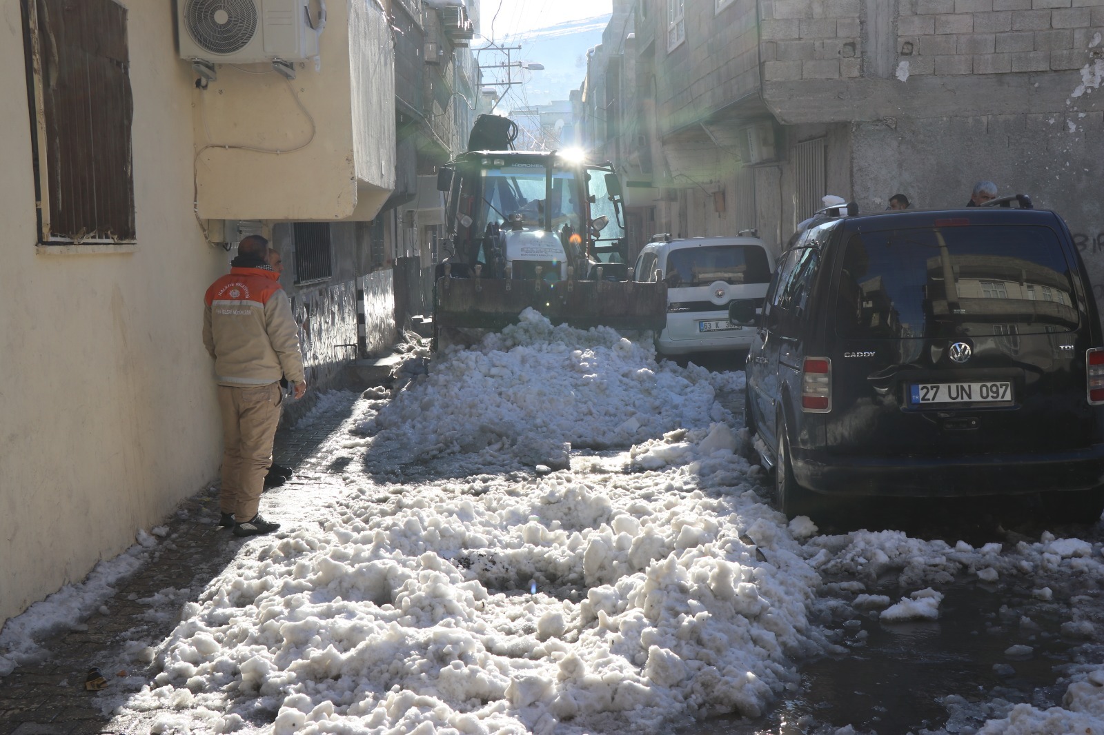 Haliliye’de etkili olan kar yağışı ve buzlama nedeniyle ekipler alarm durumuna geçti. Haliliye Belediyesi kent genelinde hayatın aksamaması için gece gündüz görev yapıyor.