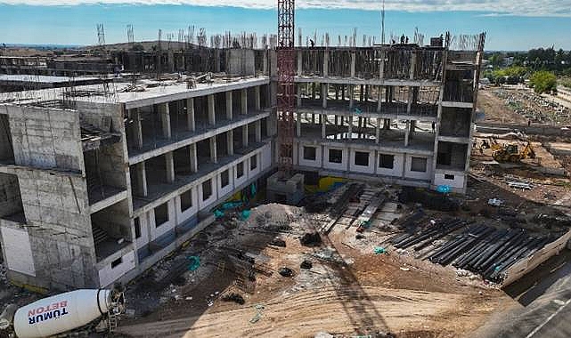 Şanlıurfa’nın Harran ilçesinde yapımı süren yeni devlet hastanesi, hızla yükselen katları ve örülen duvarlarıyla dikkat çekiyor. Proje, hem bölge halkının sağlık hizmetlerine erişimini kolaylaştırmayı hem de Harran’ın sağlık altyapısını güçlendirmeyi hedefliyor.Zemin katla birlikte 3 katı tamamlanan hastane inşaatında, yüzlerce işçi yoğun mesai harcayarak projeyi zamanında bitirmek için gece gündüz demeden çalışıyor. Şantiye alanında hummalı çalışmalar devam ederken, yükselen bina ile birlikte hastanenin silueti de belirginleşmeye başladı.Modern mimarisi ve ileri teknolojik donanımlarıyla öne çıkan Harran Yeni Devlet Hastanesi; acil servis, poliklinikler, ameliyathaneler ve yoğun bakım üniteleri gibi birçok önemli birimi bünyesinde barındıracak. Proje tamamlandığında, yalnızca Harran’a değil, çevre ilçelere de hizmet sunacak bir sağlık merkezi haline gelecek.Yeni hastane, sağlık hizmetlerinin kalitesini artırmanın yanı sıra, inşaat süreci ve sonrasında bölge ekonomisine ve istihdama da önemli katkı sağlayacak.Harran Yeni Devlet Hastanesi’nin en kısa sürede tamamlanarak hizmete açılması hedefleniyor.