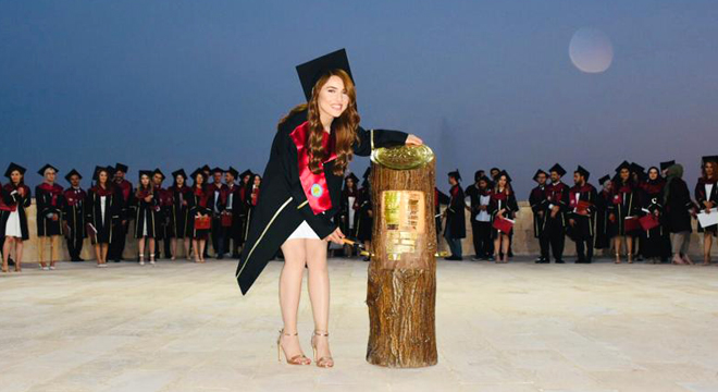 Saygı duruşu ve İstiklal Marşı ile başlayan törende açılış konuşmaları yapıldı. Fakülteyi birincilikle bitiren Dr. Edanur Ekinci de konuşma yapanlar arasındaydı. Konuşmaların ardından dereceye giren öğrencilere plaket ve başarı belgeleri takdim edildi. Ardından fakülte birincisi Dr. Edanur Ekinci yaş kütüğüne plaket çaktı.