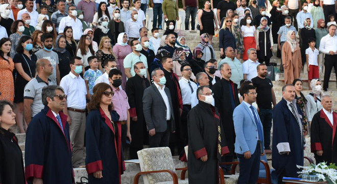 Diploma dağıtımının ardından Harran Üniversitesi Hastanesi Başhekimi Dr. Öğr. Üyesi Ahmet Güzelçiçek, yeni mezunlara hekimlik yemini ettirdi.
