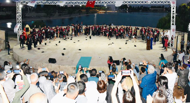 Yılın intörnü olarak seçilen Dr. Özge Bergin Ekmen’e Acil Tıp Uzmanları Derneği adına Harran Üniversitesi Tıp Fakültesi Acil Tıp Anabilim Dalı Başkanı Doç. Dr. Hasan Büyükaslan tarafından ödülü verilirken, mezun olan 124 hekime diplomaları dağıtıldı.