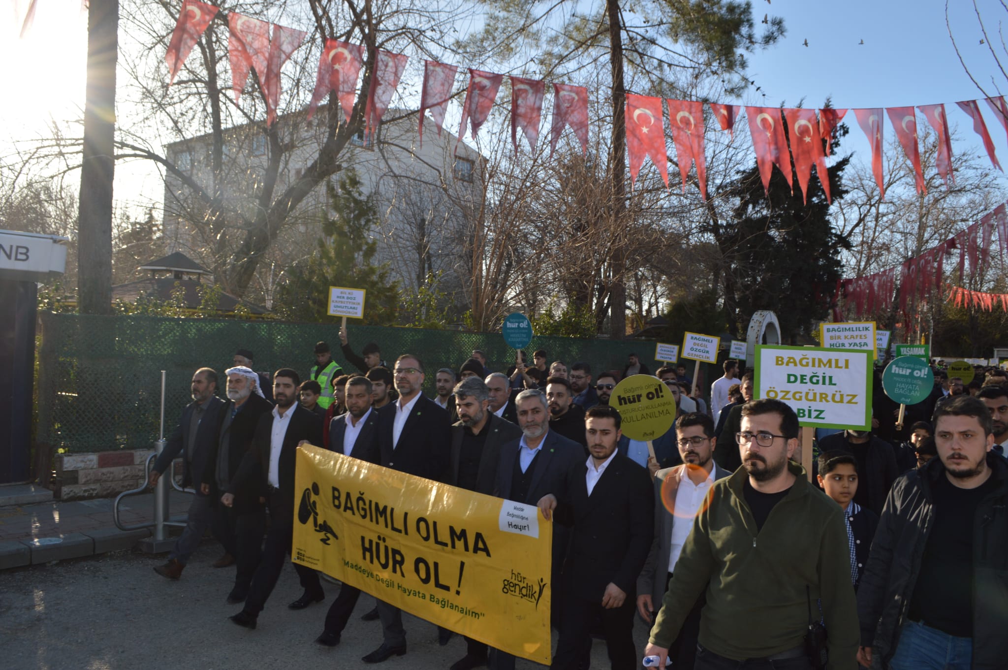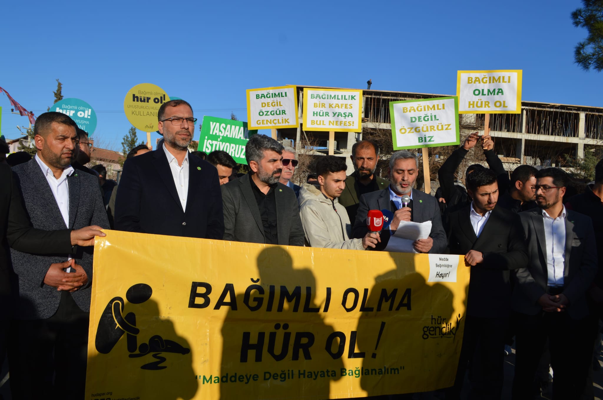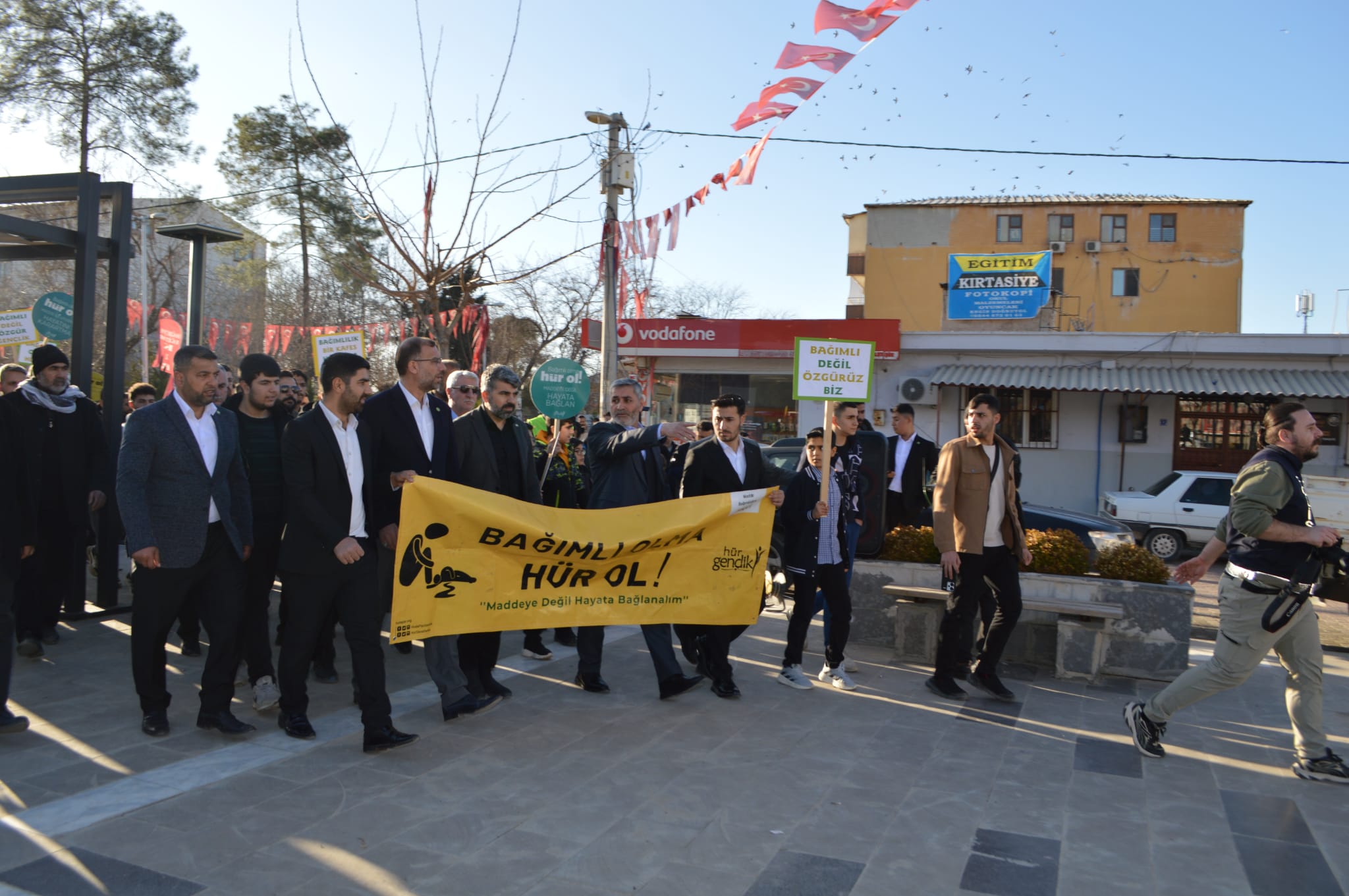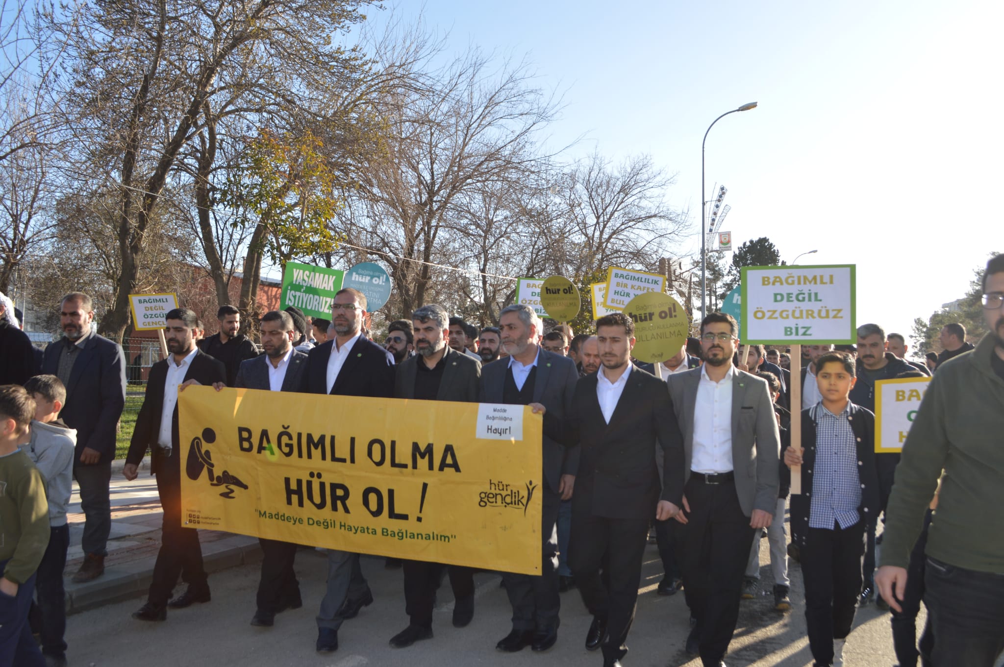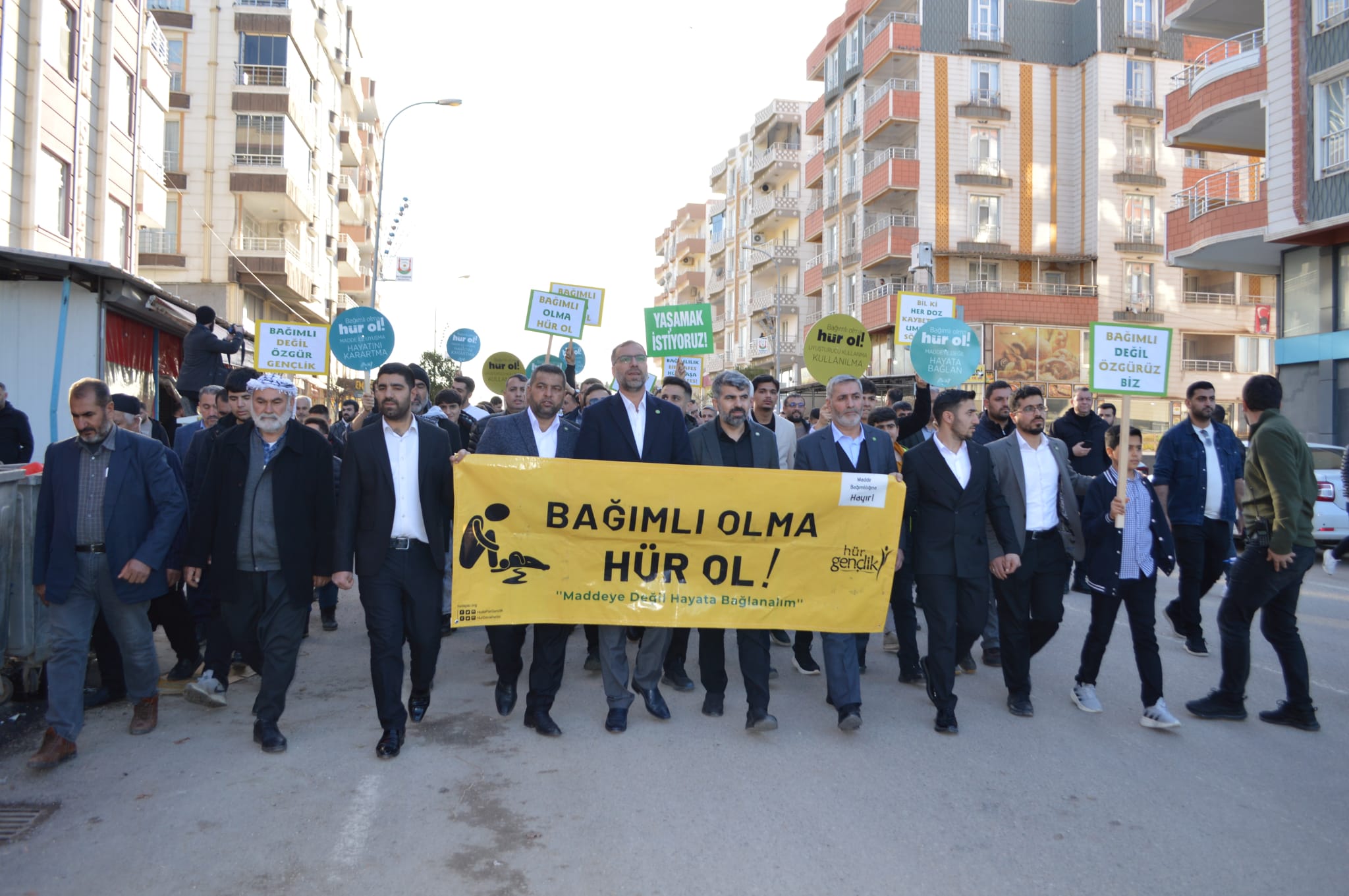 Hilvan ilçesinde gençleri ve toplumu tehdit eden her türlü bağımlılığa dikkat çekmek amacıyla kitlesel yürüyüş ve basın açıklaması düzenlendi.