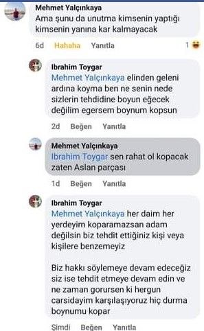 Akçakale Belediye Başkanı Mehmet Yalçınkaya’nın akrabası ve aynı zamanda koruması olan Mehmet Yalçınkaya’nın kendilerini tehdit ettiğimi iddia eden Toygar, “Akçakale Belediye Başkanının yeğeni olan, aynı zamanda koruması Mehmet Yalçınkaya resmen bizleri tehdit etmektedir” dedi.