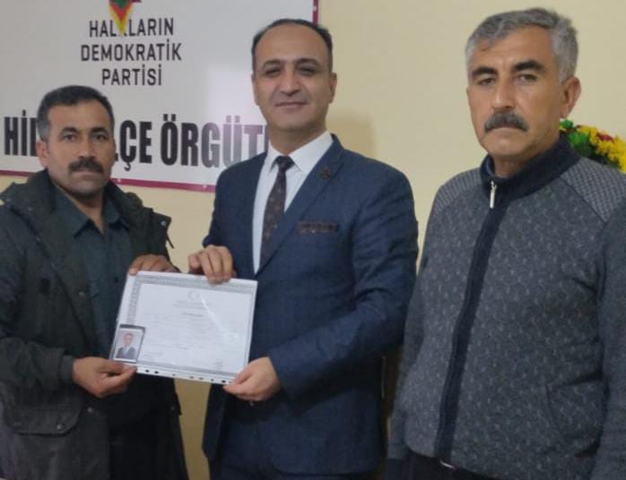 Hilvan Belediye Başkanlığına talip olan İshak Bıdık, HEDEP İlçe Başkanlığına müracaat etti. Resmi evraklarını ilçe başkanlığına teslim eden Bıdık, başvurusunu yaptıktan sonra İlçe Belediye Başkanlığına Aday Adayı olduğunu açıkladı.
