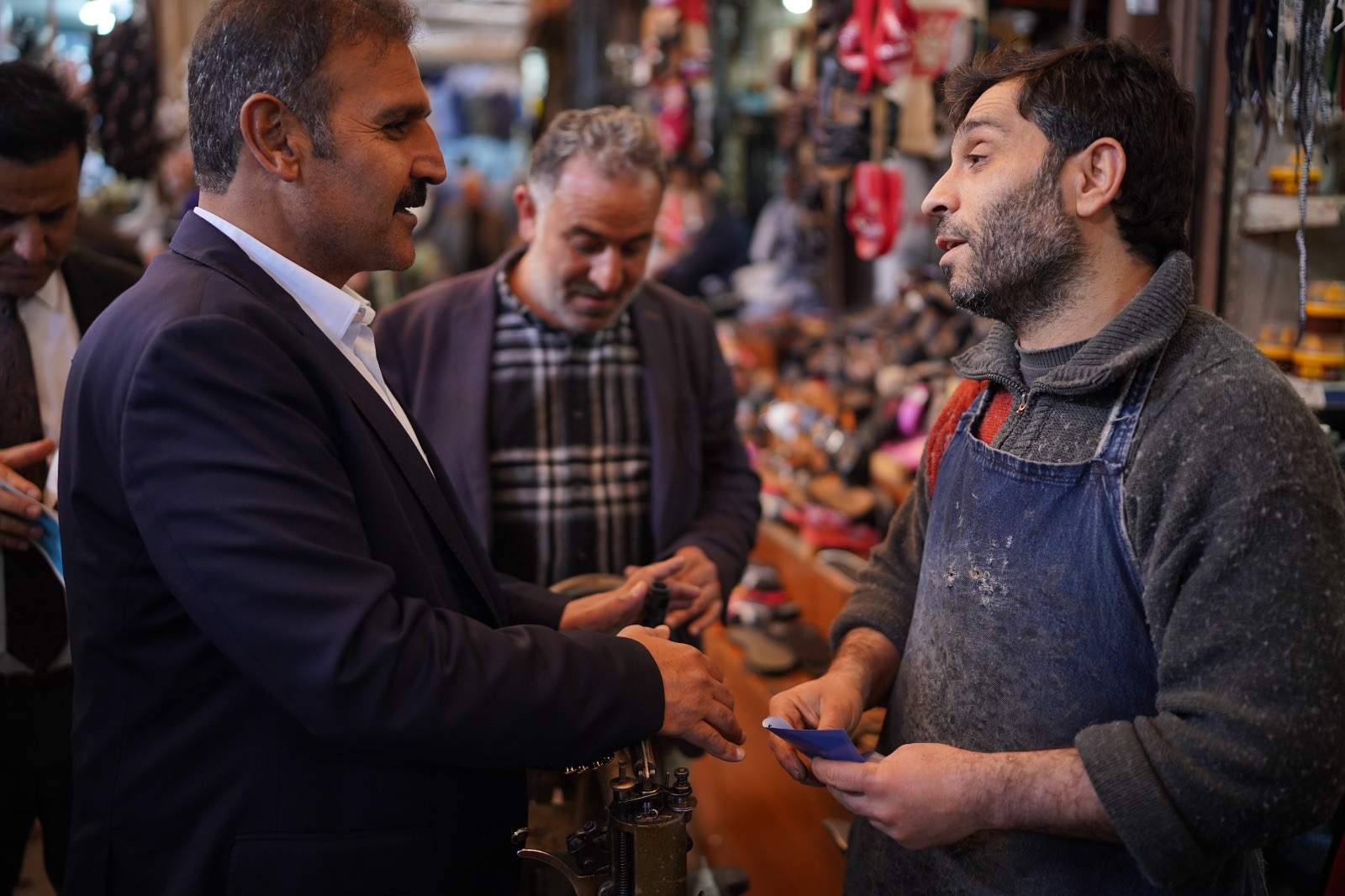 ŞANLIURFA- 14 Mayıs 2023 tarihinde yapılacak olan Genel Seçimlere sayılı günler kala İYİ Parti Şanlıurfa Milletvekili Adayı Emin Yetim, Aşağı Çarşıda bulunan Kunduracılar Çarşısını ziyaret ederek destek istedi.