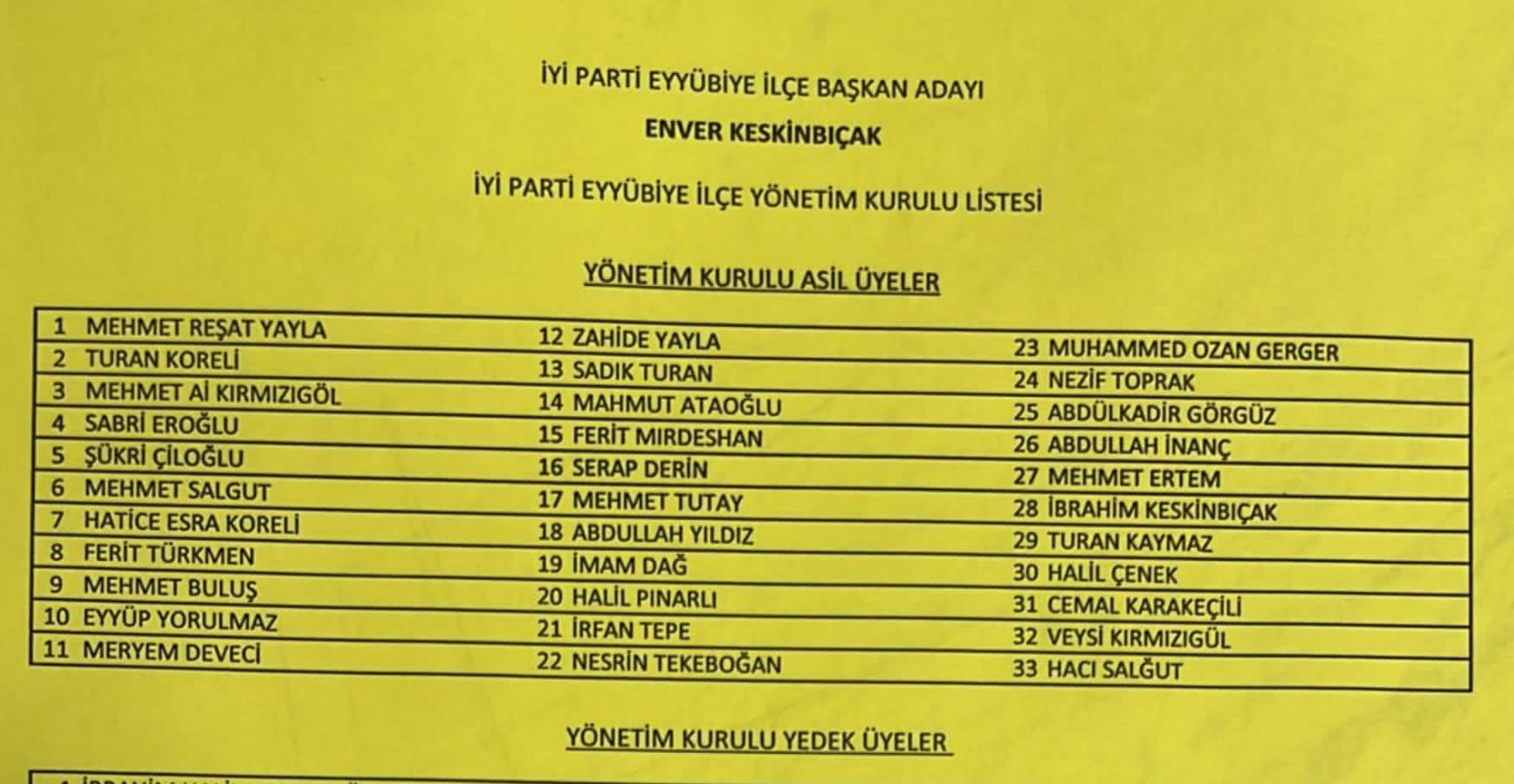 İşte Eyyübiye İYİ Parti listesi: