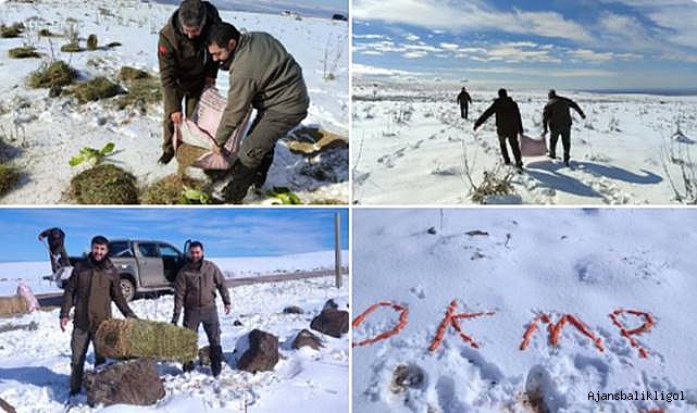 Karacadağ'da yaban hayvanları için yemleme yapıldı