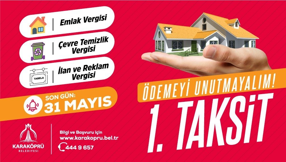 Karaköprü Belediyesi İşletme ve İştirakler Müdürlüğü, vergi borcu olan mükelleflerin 2022 yılı borçlarının ilk taksitinin ödemeleri için son günün 31 Mayıs (yarın) olduğunu hatırlattı.
