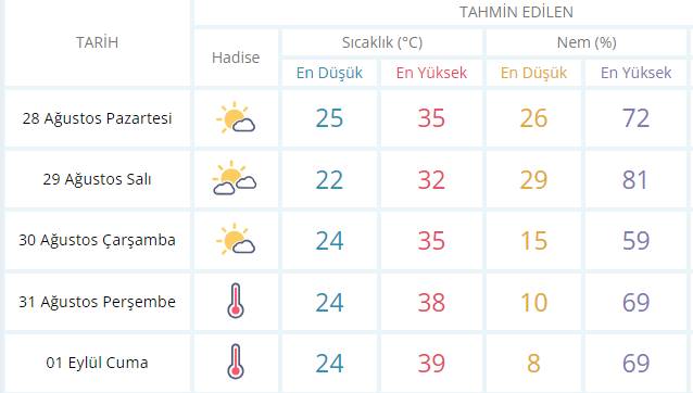 Şanlıurfa’da ise hava sıcaklıkları şöyle olacak: