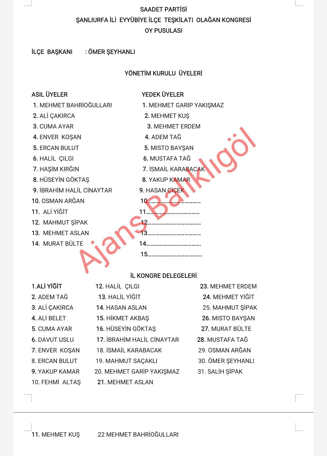 Saadet Partisi Şanlıurfa i teşkilatı ilçelerde güçlenme hamlesi yapmaya devam ediyor. Geçtiğimiz aylarda istifa eden Abdullah Direk’in yerine İl Teşkilatının oluru ile Genel Merkez tarafından Saadet Partisi Eyyübiye ilçe Başkanlığına ataması yapılan Ömer Şeyhanlı, zaman kaybetmeden kongre çalışmalarına başladı.