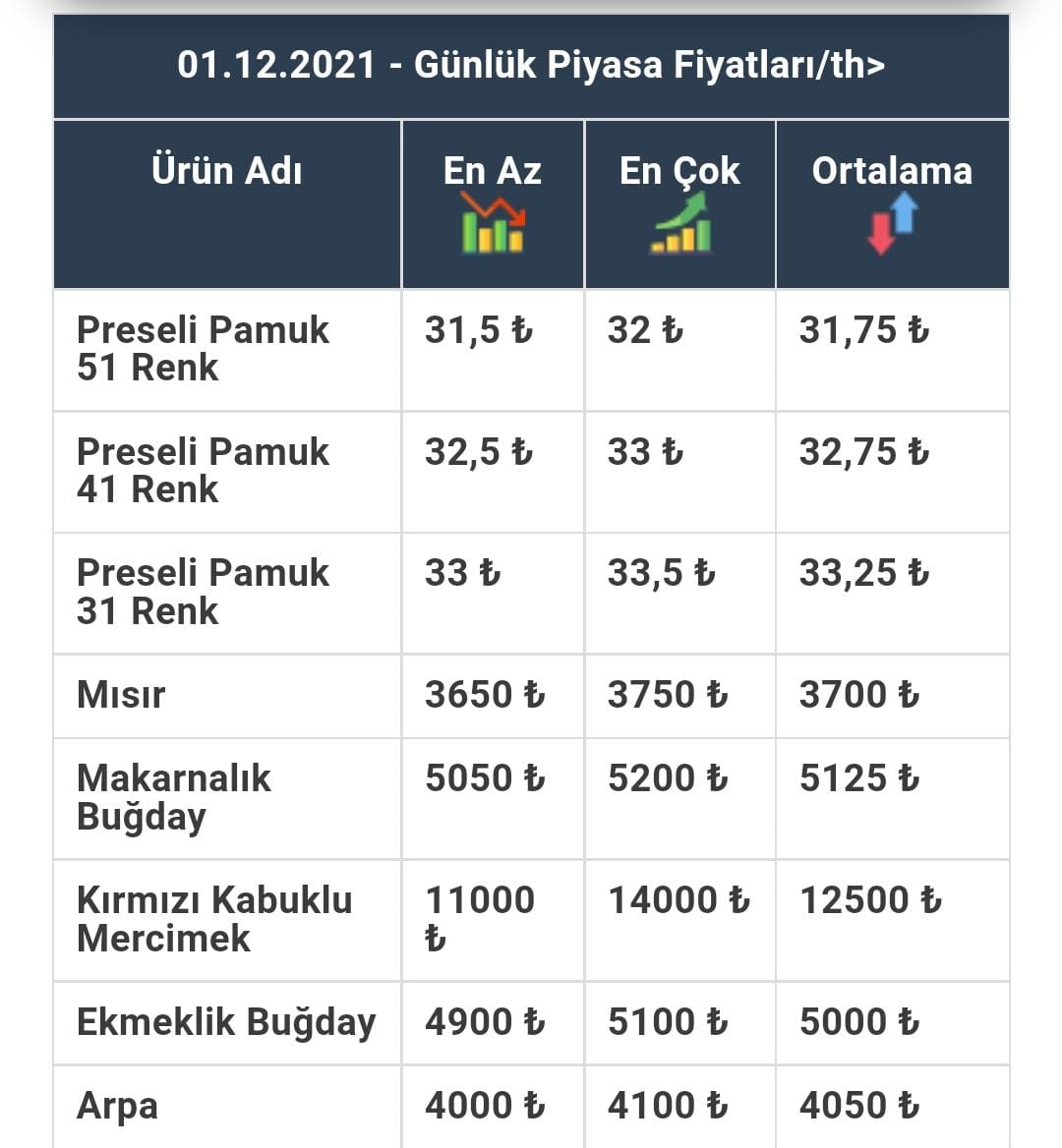 Şanlıurfa Ticaret Borsasında preseli pamuğun kilogramı 33.25 liradan satılırken diğer ürünlerin fiyat listesi şöyle oluştu:
