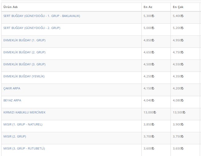 Gaziantep Ticaret Borsasında hububat fiyatları şöyle: