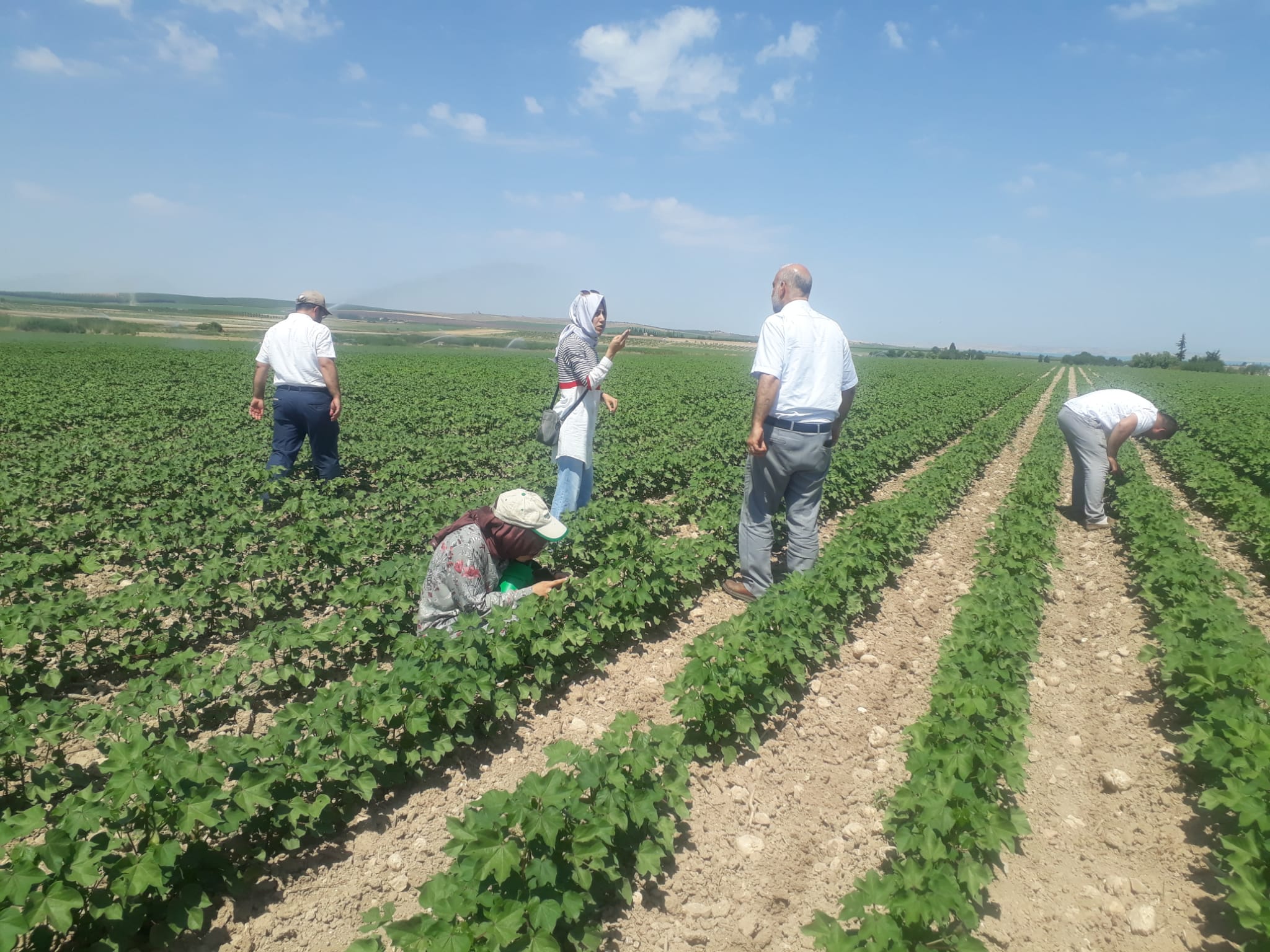 “Tüm personelimiz ile birlikte yığınak mahallenizde pamuk üretiminin en çok olduğu yerde çiftçi kardeşimizin Ekim alanındayız. Burada olmamızın sebebi yeşil kurt zararlısı söz konusu üretim olduğu zaman zararlı böcekler oluşmaktadır. Zararlı böcekleri imha etmek onlarla mücadele etmek için mutlaka kimyasal ilaçlar kullanıyoruz fakat biz bu kimyasal ilaçları azaltmak adına insan sağlığı tarlayı çevreye zarar verdiğinden kaynaklı ilaçlamayı en aza indirmek ve girdim maliyetine en aza indirmek amacıyla ilçe müdürlüğümüzün tüm personeli ile sahadayız.