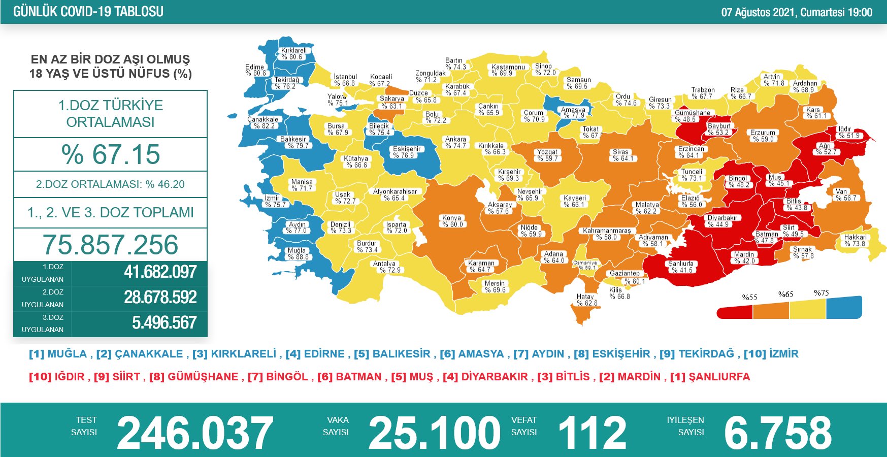 Türkiye'de son 24 saatte 246 bin 37 Covid-19 testi yapıldı, 25 bin 100 kişinin testi pozitif çıktı, 112 kişi hayatını kaybetti.