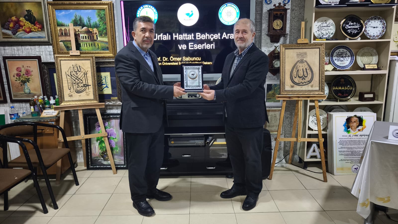 Uluslararası Güzel Sanatlar ve Sanatçıları Derneği SANATDER'in Kültür-Sanat sohbetleri gecesine Harran Üniversitesi İlahiyat Fakültesi Dekanı Prof.Dr. Ömer Sabuncu konuşmacı olarak katıldı. Aynı zamanda Kültür Bakanlığı Ebru sanatçısı olan Harran Üniversitesi İlahiyat Fakültesi Dekanı Prof.Dr. Ömer Sabuncu'nun konusu Urfalı Hattat Behçet Arabi idi.