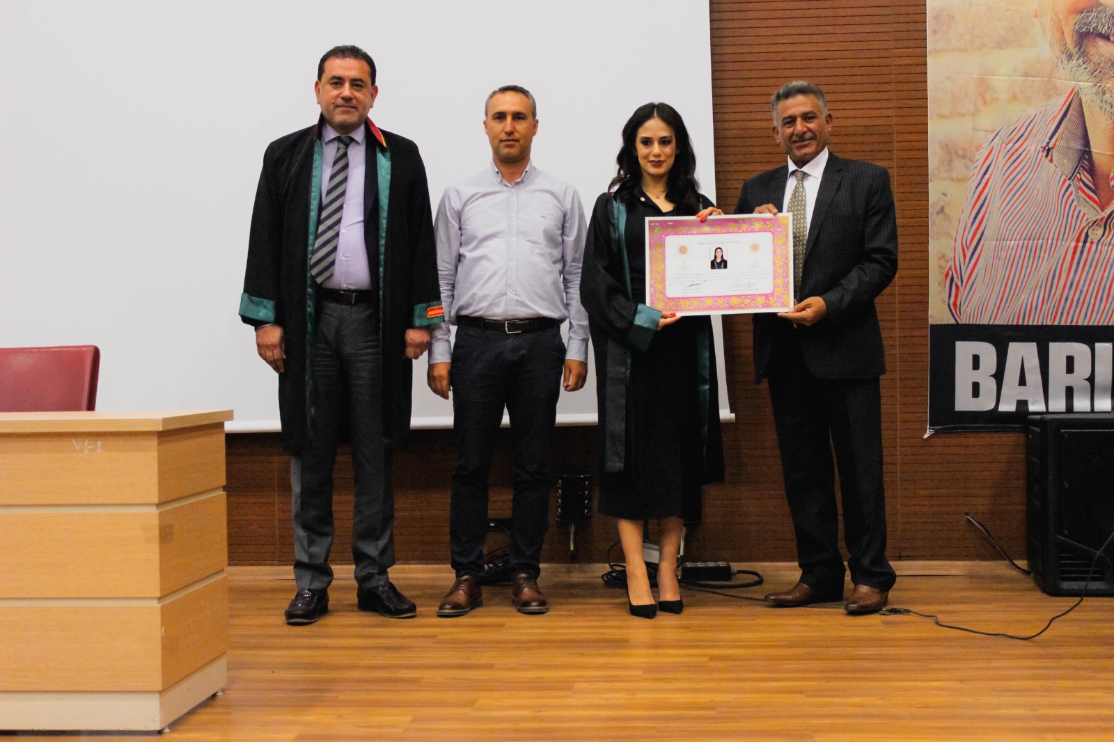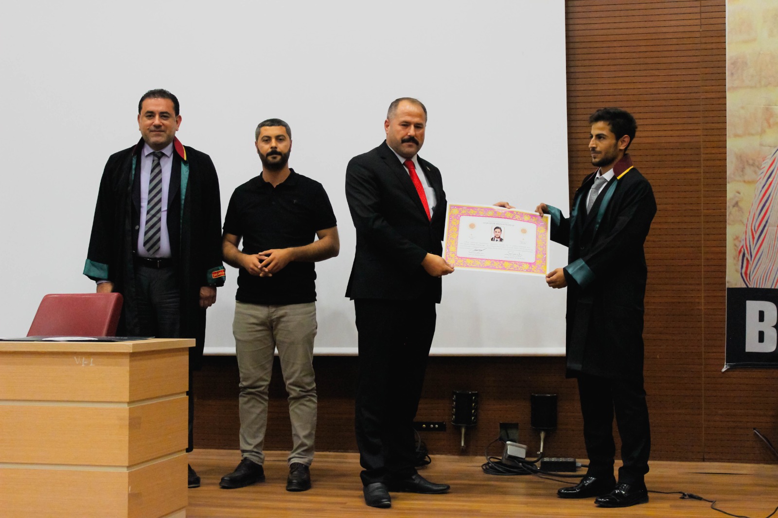 Hukuk Fakültesi’nde eğitimlerini tamamlayıp, zorunlu stajlarını da başarılı bir şekilde bitiren genç avukatlar için Şanlıurfa Barosu’ndaki Av. Tahir Elçi Konferans Salonu'nda tören düzenlendi. Düzenlenen törene genç avukatların yanı sıra yanlarında staj yaptıkları avukatla ve Baro Başkanı Mehmet Velat İzol katıldı.