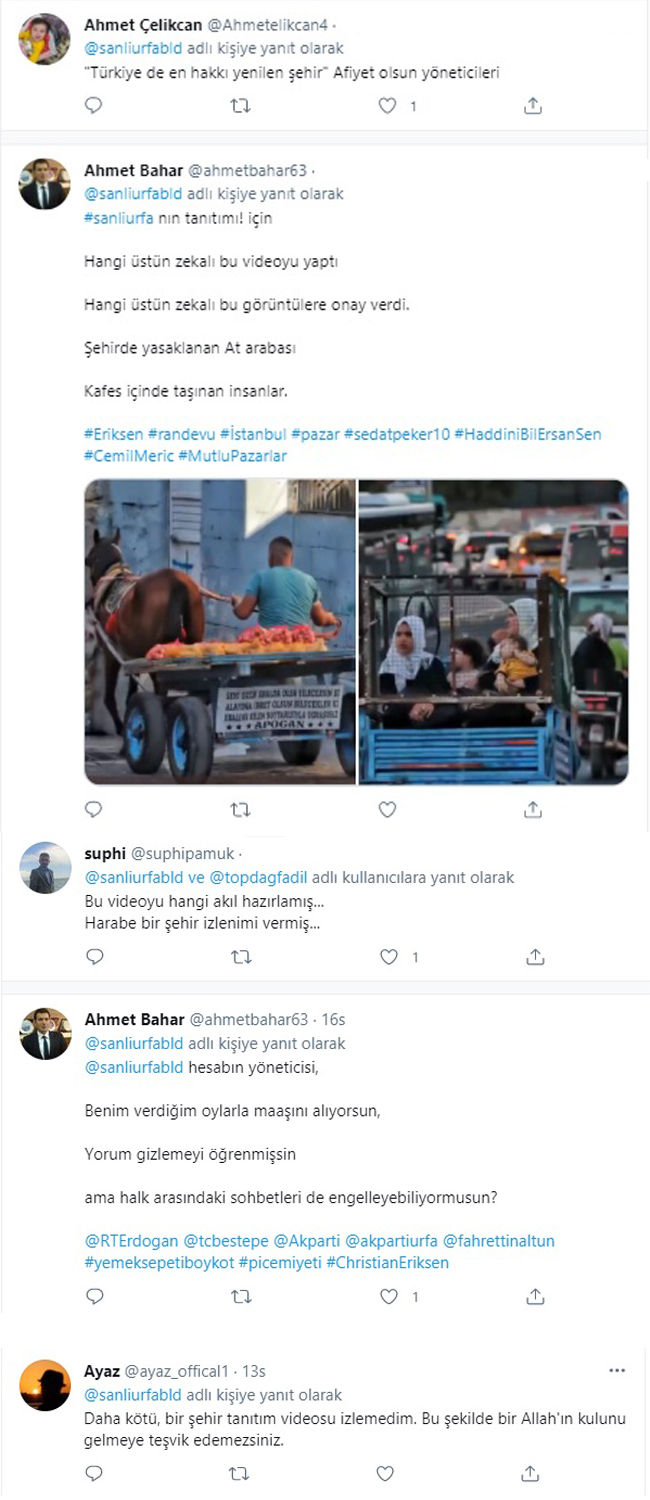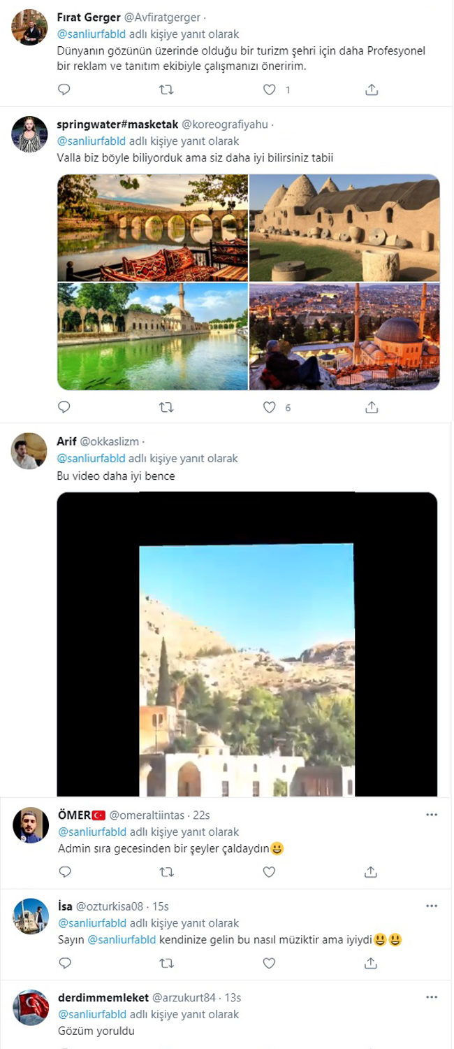 Gelen tepkiler arasında “Şanlıurfa’nın tanıtımını yaparken neyi murat ettiniz. Neden bu kareler Urfa tanıtım videosunda yer alıyor” ve “Başlığı görmesem burası Hindistan derdim” şeklinde ilginç yorumlar yer aldı. Videonun sağ alt kısmında ‘yorumları gizle’ seçeneğinin aktif olması ise dikkatlerden kaçmadı.