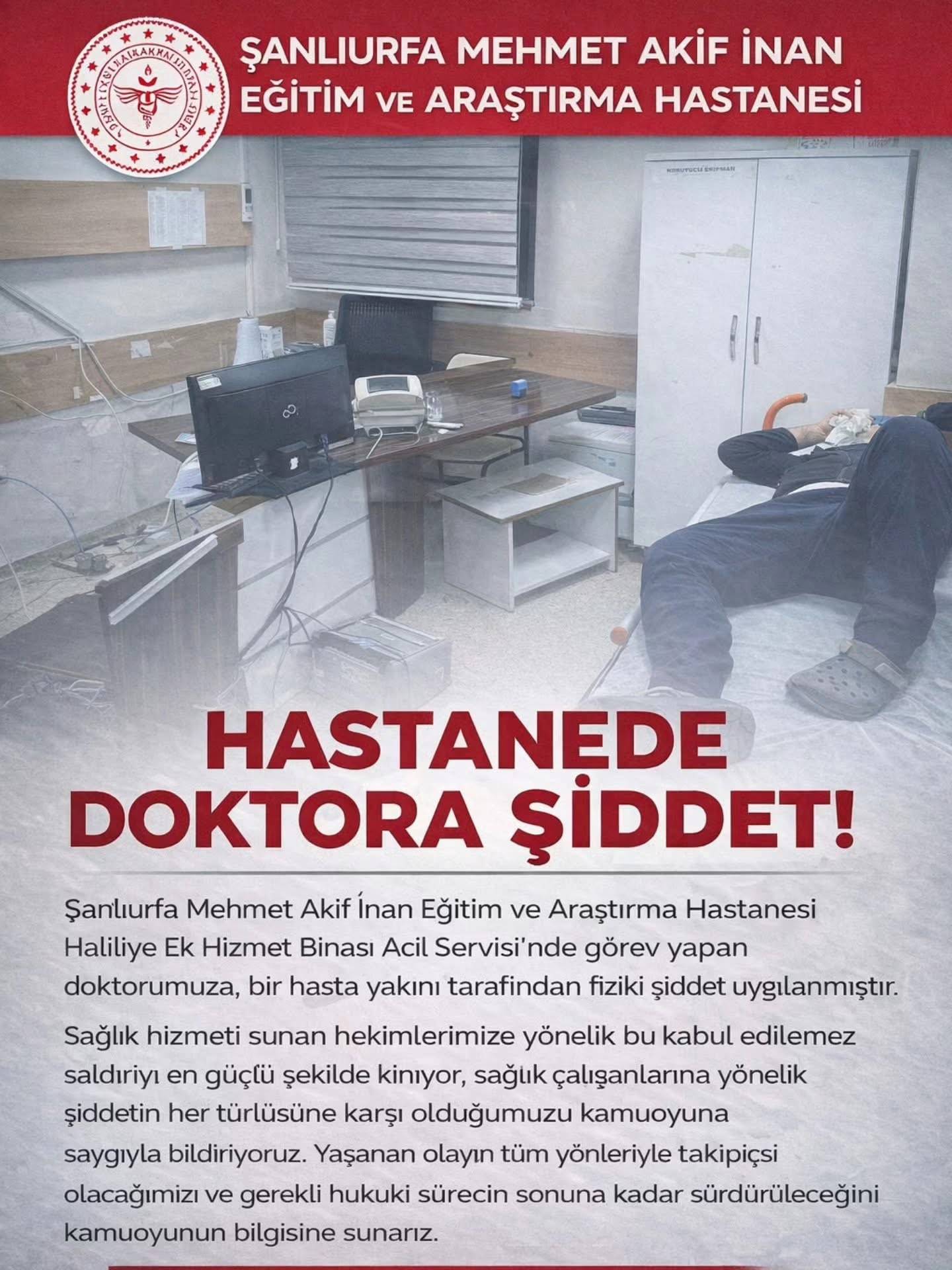 Olayın ardından hastane yönetimi tarafından yapılan açıklamada, sağlık çalışanlarına yönelik şiddetin kabul edilemez olduğu vurgulandı. Açıklamada, hekimlere yönelik saldırının en güçlü şekilde kınandığı belirtilirken, sağlık çalışanlarına karşı her türlü şiddetin karşısında olunduğu kamuoyuna duyuruldu.