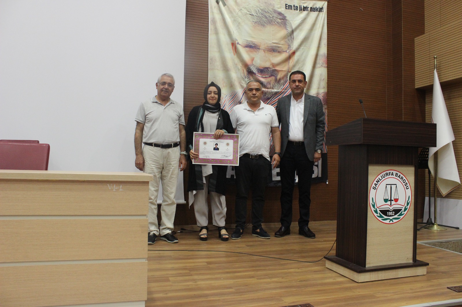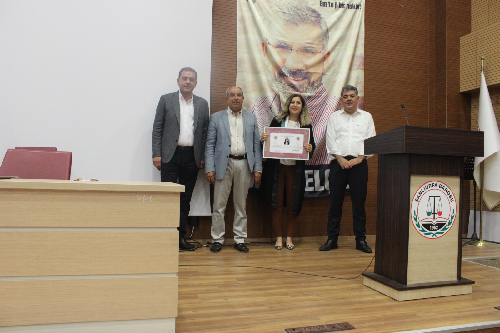 Stajını tamamlayan avukatlara ruhsatlarını veren Baro Başkanı İzol, meslektaşlarını tebrik etti.
