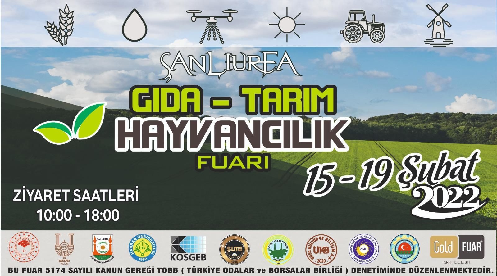 15 -19 Şubat tarihleri arasında Karaköprü’de bulunan Şanlıurfa Fuar Merkezinde ziyaretçilerine kapılarını açacak olan “9. Şanlıurfa Gıda Tarım ve Hayvancılık Fuarı” pek çok sektörü tek bir çatıda buluşturacak.