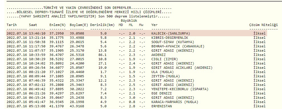 Boğaziçi Üniversitesi Kandilli Rasathanesi ve Deprem Araştırma Enstitüsü, Şanlıurfa’nın Haliliye İlçesinde bir deprem meydana geldiğini duyurdu.