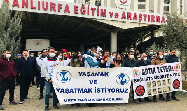 SES Şanlıurfa Şubesi üyeleri, Şanlıurfa Eğitim ve Araştırma Hastanesinde görevli hemşire Mustafa Arslan için hastane önünde açıklama yaptı. Şube Başkanı Salih Karataş, “Gün geçmiyor ki, ülkemizde sağlık emekçilerini ve sağlık ortamında çalışan emekçileri hedef alan sağlıkta şiddet haberi duyulmasın” dedi.