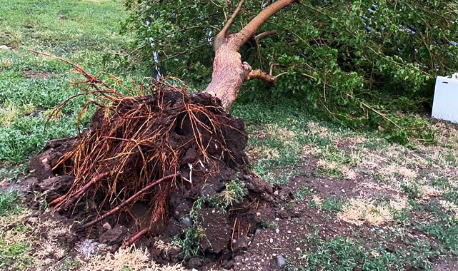 Yine Hilvan'da bir ağaç fırtınanın şiddetiyle komple yerinden söküldü.