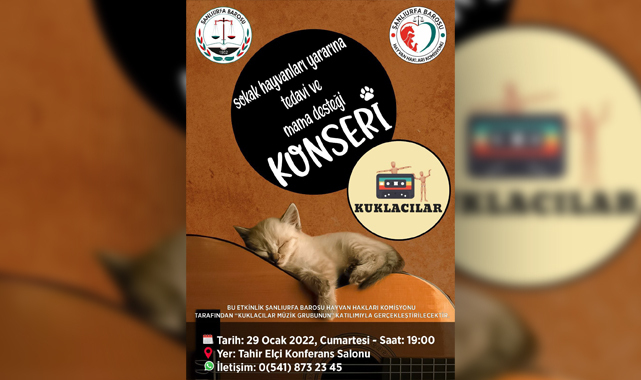 Sokak hayvanlarına karşı hassasiyetin giderek yayıldığı kentte, Şanlıurfa Barosu da bir ilke imza atıyor. Bugüne kadar hayvan haklarına karşı işlenen suçlarda hukuki destek sağlayan Baronun Hayvan Hakları Komisyonu, sokak hayvanları yararına bir konser düzenleyecek. Kuklacılar müzik grubunun sahne alacağı konserden elde edilen gelir ile sokak hayvanlarına mama ve tedavi desteği sağlanacak.