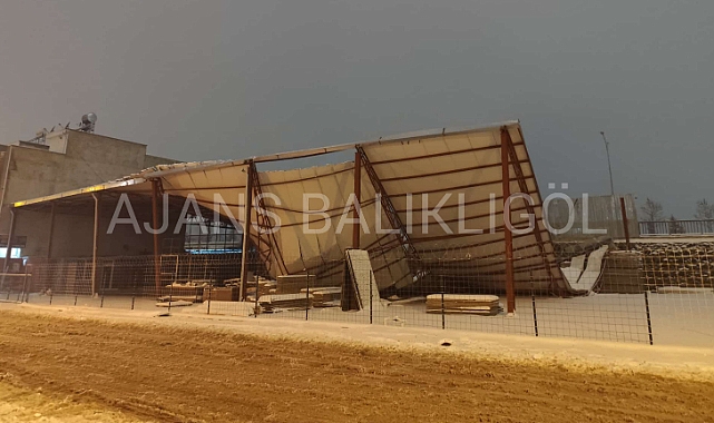 Şanlıurfa’nın Haliliye ilçesine bağlı Ahmet Yesevi Mahallesi’nde, etkili olan yoğun kar yağışı ve tipi nedeniyle bir oto galerinin çatısı çöktü.