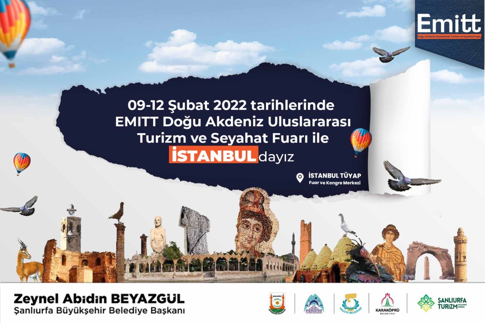 EMITT Fuarının, şehirlerin kültür ve turizminin tanıtılması noktasında önemli bir yere sahip olduğu bilinciyle fuara katılan Şanlıurfa Büyükşehir Belediyesi ilçe belediyeleri, Şanlıurfa Turizmi Geliştirme Derneği ve Şanlıurfa’da turizm sektörüne hizmet eden paydaş kurumlarla birlikte fuarda yerini aldı.