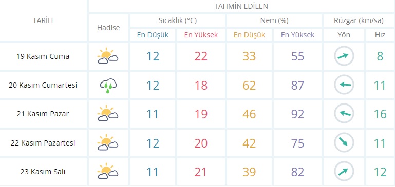 Meteorolojinin Şanlıurfa için açıkladığı 5 günlük tahminler şöyle;